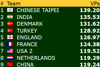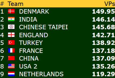 Uansett ble det 13 IMP til de norske damene da amerikanerene stoppet i 6 grand ved det andre bordet.