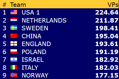 Norge - USA 1 8,52 - 11,48 (IMP-score: 25- 30)