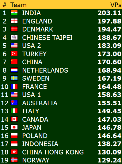 Norge - Taiwan 6,48 - 13,52 (IMP-score: 32- 45)