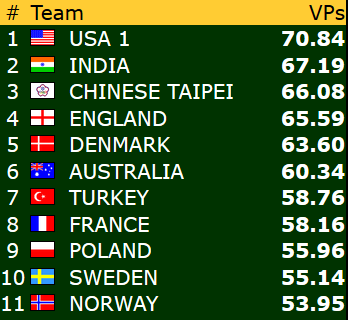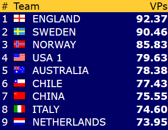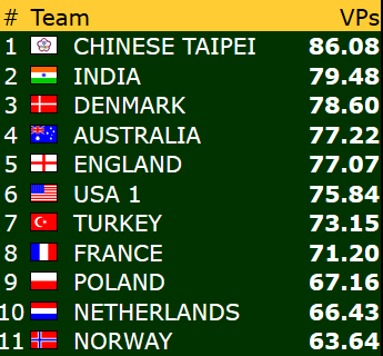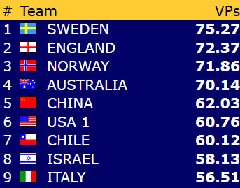 I siste oppdatering i går kunne du lese at de norske damene lå bak med 38 IMP etter de tre første settene, men at de risikerte å tape inntil 11 IMP på en turneringsledersak. Siste nytt er at Norge tapte 2 IMP, og dermed er avstanden i realiteten 40 IMP før de tre siste settene.