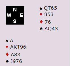 Jeg kan også tenke meg at mange som hørte nord melde 3 hjerter ikke er vant til at makkeren deres gjør det med fem trumf, men heller melder 4 hjerter direkte, spesielt når de har en singelton. Hoppet til 3 hjerter er sperr, og de fleste har definert 4 hjerter over makkerens 1 hjerter som sperr også. Jeg sier ikke at hoppet til 3 hjerter ikke kan være gjort med femkorts støtte, men det er nok veldig ofte med fire-korts trumf. Med denne hånden gjorde jeg en liten spørreundersøkelse, og 7 av ti toppspillere meldte 4 hjerter direkte, tre av dem 3 hjerter.