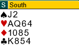 Vest blir altså spillefører i 4 spar og makker spiller ut kløver 8. Du sitter på syd sin plass og ser hånden til høyre som blindemann.