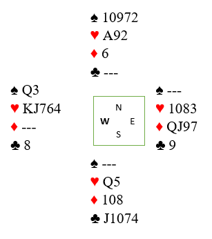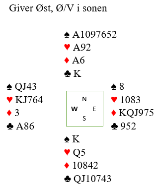 Vest fant imidlertid beste motspill da han lå unna med esset da kløver konge ble spilt. Da får spillefører ingen kløvertaper, men i stedet får han flere tapere i rødfargene.