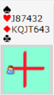 Denne hånden er heller ikke beskrevet i noe system. Det nærmeste er vel for de som bruker 2 hjerteråpning som hjerter + en minor, men det er jo normalt 5-4 eller 5-5, ikke 6-7 fordeling!