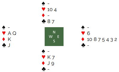 Ved det andre bordet spilte øst 4 hjerter. Kløver 10 kom ut. Spillefører hadde ingen store problemer og tapte kun to trumfstikk og til spar ess.