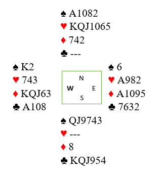 Vest hadde ett ess og trumfkongen, og øst satt med to ess! Så dobling var forståelig, men slemmen med 19 HP til sammen sto som et segl! En trumffinesse måtte tas, og både hjerter- og kløver ess kunne presses ut mot trumf. Forsvaret fikk kun ett stikk i ruter, +1210.