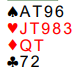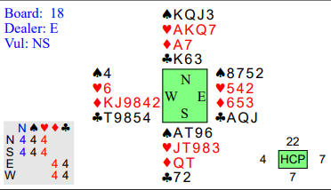 Merk at det teorien var kun ti stikk i hjerterkontrakt siden N/S kan ta to sparstikk fulgt av en spar til stjeling hos nord. Ved to andre bord ble det meldt 6 hjerter, men begge stedene ble det to bet etter sparutspill! Idealresultatet er i teorien at N/S stamper i 5 kløver (doblet) og går 300 i bet.