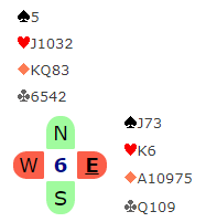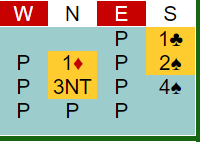 I meldingene tenkte nok nord han hadde en stjeleverdi (hjerter), men det hadde han ikke. Det morsomme er at nords hånd likevel inneholdt en stjeleverdi, men det var i kløver hvor paret hadde 3-3 fordeling!