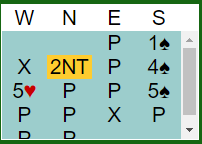 Johansen spilte ut en stor hjerter mot 5 spar doblet. Jeg kjenner ikke avtalene deres for honnørutspill, og da spesielt på fem-trinnet. På kongeutspill på fem-trinnet er det mange som legger fordeling. I så fall visste vest at øst hadde en eller tre hjerter.