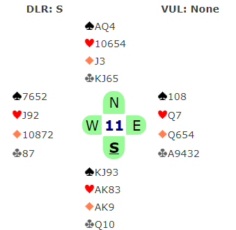 Pensjonistbridge 22/10, 11 par, M= 0