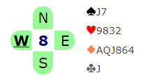 Bjørn Brovold åpnet med 1 hjerter, pass fra undertegnede og Hans Petter Brynildsen (V) men så slo Arne Marthinussen til med budet 4 spar. Etter to ganger pass kom så Vest på banen igjen ved å melde 5 ruter og så fulgte pass fra Arne og Bjørn. Hva ville du nå gjort som Syd?