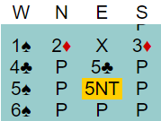 Her klaffet systemet godt for Tundal-Kvangraven. Deres 2 grandåpning viser nemlig begge minor, konstruktiv hånd. Dermed kunne syd sperre kraftig med det samme. Det er sannelig ikke lett når man må begynne å melde på femtrinnet!