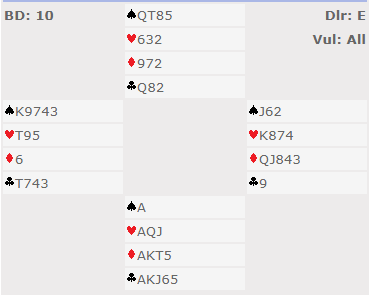 PS. Merk at 6 kløver kan vinnes selv om vest ikke spiller ut ruter. Men det er ren teori, eller en ren double dummy spilleføring (med helt åpne kort).