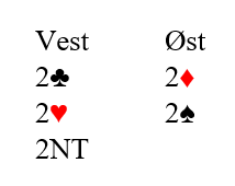 Hvis dette er starten på meldingsforløpet, er det mye mer komfortabelt. Svarhånden vet om minst 25 balanserte HP og kan bruke det vanlige 2NT-systemet, for eksempel Stayman (eller Puppet Stayman) og overføring om han har femkorts majorfarge.