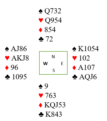 Her må det et vakkert dronningoffer til. Du må i diagramsituasjonen stikke med spar dame og spille hjerter dame tilbake! Det blir særdeles effektivt motspill hvis sluttposisjonen ganske sikkert er akkurat slik du ser for deg: