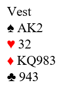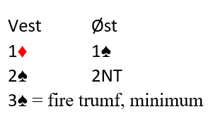 Til slutt tar vi med en nydelig eksempel på bruken av «2NT-spørsmålet» og åpnerens nøyaktige beskrivelse av hånden sin fra en turnering forleden: