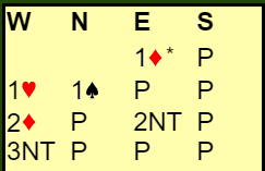 Pluss 200 var godt nok. For Bodil Øigarden-Liv Marit Grude meldte pent til 5 ruter som Ø/V, og den ble greit vunnet med to stikk for de røde essene til forsvaret. Spillet ga 12 IMP til Norge.