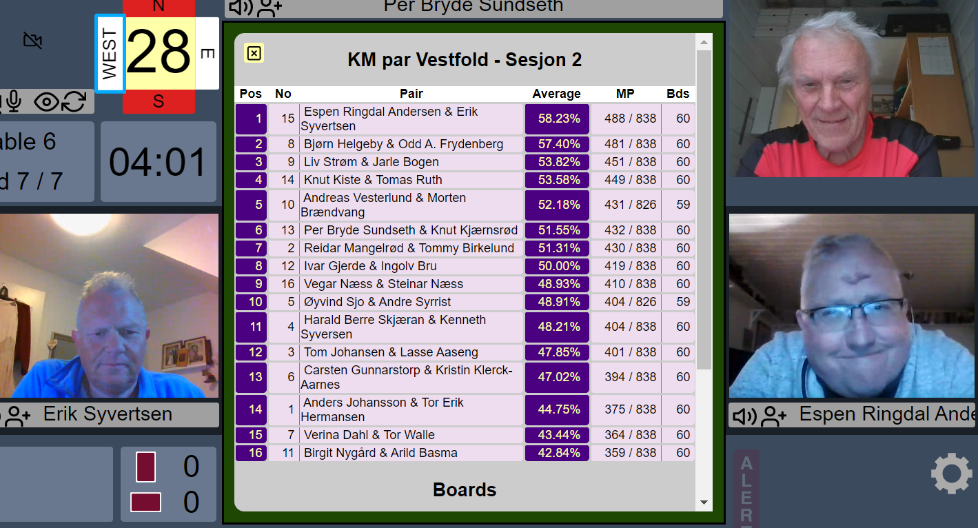 Søndag kom kanondraget, og meget sterk spilling ga hele 15.3 VP i snitt i de fem siste kampene. Det holdt til seier!