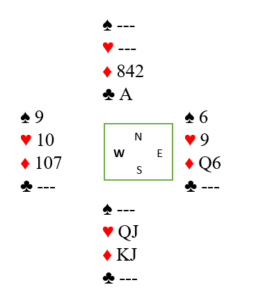 Ved det andre bordet hadde ikke den islandske nord denne konvensjonen til rådighet, og nord foreslo 2 hjerter etter innmeldingen 1NT. Det ble kontrakten, og den kunne nok ha blitt vunnet. Den islandske nord gikk imidlertid en bet, 12 IMP til Norge.
