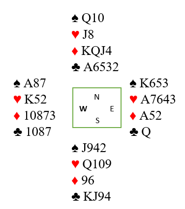 Dagens spill er fra en lagturnering på søndag. For å komme i riktig kontrakt må N/S ha bra avtaler. Hvis ikke kan de ende i en kontrakt som forutsetter flaks, men har visse sjanser. Selv om flaksen er på N/S sin side i første omgang er det litt mer å tenke på. Ta først meldeprøven syd fikk.