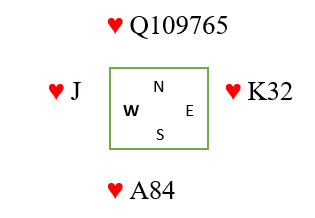 Det er en mulighet å toppe hjerteren, men da vinnes kun om vest har damen dobbel. At damen sitter tredje hos øst er større sjanse (tre mot to) enn at den sitter andre hos vest.