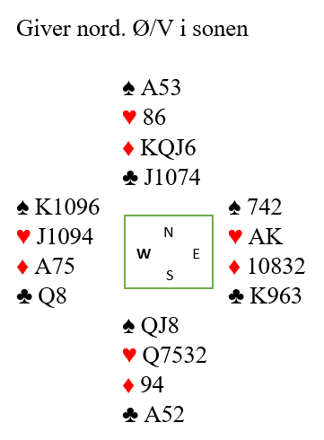 N/S har 25 HP til sammen, god kløverfarge og skikkelige stoppere i alle fargene. Stikk over alt, liksom. Likevel gikk nesten en tredel av spilleførerne bet i 3NT.