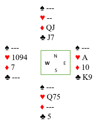 Kløverfinessen tas i første stikk. Beste motspill nå er faktisk å fortsette med kløver. Det er fire kløverstikk og tre ruterstikk, og selvsagt mulig å få (minst) to stikk i majorfargene. Men hvis spillefører som ikke vet han har et inntaki hjerter til syd senere tar kløverstikkene blir det fryktelig vanskelig å finne tre avkast fra nord på de tre siste kløverrundene. Han skviser seg selv! Mot slutten kan det bli også da bli ping-pong spille mellom motspillerene og nord, sepsielt hvis det spilles spar til knekten.