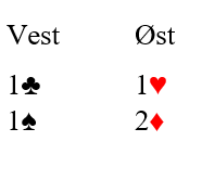 Etter standard meldemetoder starter det med 1 kløver-1 hjerter, og så 1 spar fra åpneren (eller 1 kløver-1ruter for de som bruker kløverføringer, så 1 spar). Hva nå?