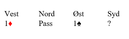 Du sitter altså på vests plass, og la oss si nord åpner med 3 hjerter. Øst dobler, syd passer, og det er din tur. Hva melder du?