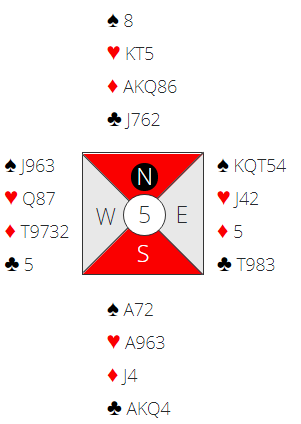 Her i bloggen ble det fundert på hvordan N/S kan melde med styring til den vakre storeslemmen i kløver. Da hadde jeg oversett at øst har en hånd som det absolutt er helt greit å melde inn med utenfor sonen!