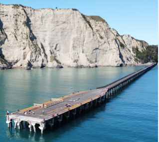Det tok en halv time å gå til enden av den gamle piren i Tolaga Warf (ved Gisborne) og tilbake. Ytterst der ute er det bare endeløst med hav -  og neste stopp er i så fall Hawaii (dog en ti timers flytur)