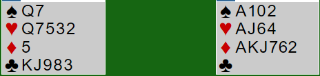 Noen vil kanskje mene det viser en veldig sterk hånd med ruter og kløver.