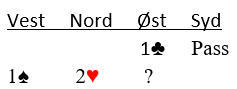 Øst kan kan kanskje melde 4 kløver om han har begge minor og er veldig sterk?