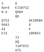 Men det er altså med hjerterutspill, og etter det naturllige ruterutspillet er det mye vanskeligere selv om han skulle finne på å skifte til hjerter i stikk to. Det ble fortsatt i ruter ved bordet, og spillefører hadde raskt ti stikk.
