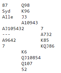 I dette spillet helt mot slutten gikk meldingene forskjellig rundt omkring i salen, og antall stikk i sluttkontraktene varierte også.