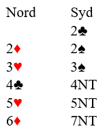 Alt dette er systemteori og avtaler. Det var dog en sjanse for at motparten meldte seg på i dette meldingsforløpet. Vest hadde en svak hånd, men med seks ruter og fire kløver. Hvis han går innpå over 2 kløver blir det straks vanskeligere, men om syd kan få hoppet til 3 spar er det mulig de kan melde videre omtrent som foreslått.