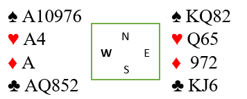Som giver åpnet jeg (undertegnede) med en 15-17 NT og makker Tone Annette Olsen søkte etter Bra alternativmajor med Stayman 2 kløver. Jeg kunne vise 4+ hjerter og dermed la makker kontrakten til 4 hjerter. Atle Evensen (V) spilte ut ru 7 til kongen hos Arild Simensen (Ø) og han fortsatte med ru A og ru 4 så jeg fikk for damen. Atle fulgte med 8 og 9 og det ble opplyst norske kast. Hva er korrekt spilleplan for meg etter dette? 8 trumf er bra, men da esset, 10,9,8 og 7 mangler er ffaren en uppercutt som kan føre til to tapere i trumf.Ruteren sittxer som vist 4-3 med 4- kort i Vest og jeg antok som størst sannsynlighet at trumf ess var i Øst siden Arild hadde begge honørene i ruter. Derrfor spilte jeg nå trumf fra hånden i stedet for å spille blindemann inn (f.eks spar til damen) og trumf derfra. På hj 2 la Evensen 7-eren, jeg damen og Arild esset. Så kom selvsagt ru 10, 13. kvisten og jeg prøvde liten trumf men Atle kunne sette i hj 9 som tvang med til å stjele med kongen. Nå var håpet at Atle med bare 3- kort ruter også hadde hatte 3- kort trumf. Hj 4 ble spilt, Arild fulgte med 8-eren og jeeg tok knekten. Men- som frykttet, Evensen var utsolgt og dermed tok Simonsen etter hvert beten med hj 10 som nå sto! Klassisk motspill men få oppdager poenget. Bare Atles valg av utspill og mitt feilvalg av spill i trumf fra hånden førte til dette resultatet. Alle andre i 4 hjerter vant ugang men uten ruter ut. Tre par spilte 3 NT med 10 stikk som ga dem topp.Det var Arne- Fred, Svein- Fle<mming og Terje- Kjell. Bra alternativ til kontrakt.