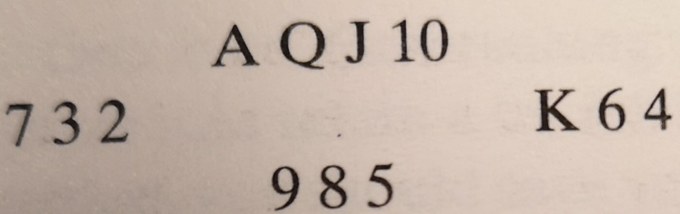 Vi sitter som motspiller i øst bak blindemann og ser at vi kan aldri få mer enn ett stikk, men det stikket får vi så lenge vi ikke legger kongen under esset. Spillefører vet derimot ikke dette og håper selvfølgelig på at finessen går og at han kan få fire stikk i fargen.