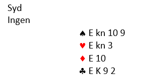 Det er en bra slem uten hjerterutspill. Da har spillefører tid til å gi bort ruterstikk om spar konge sitter i saksen. Altså må enten sparfinessen gå, eller ruteren sitte 3-3.