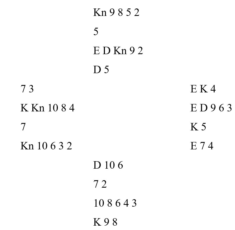 Etter å ha fulgt denne spilleplanen ser det slik ut før den siste trumfen tas fra syd (N/S):