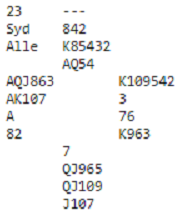 Som du ser står 6 spar i dette tilfellet. I turneringen i forrige uke meldte omtrent halvparten av Ø/V-parene 6 spar, resten stoppet i utgang.
