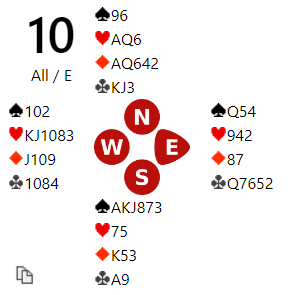 Og 6 ruter ble hva Farstad-Svendsen (Skeidar) meldte. Slik det satt var det greit å vinne tretten stikk, nesten uansett hvordan det ble spilt.