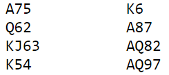 Alt vel, øst hadde gode forhåpninger om dette, men bare i ett sekund. For ruter ess kom i utspill fra syd, og hele spillet så slik ut: