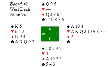 Bridge er ikke bestandig alltid helt rettferdig, og her fikk Ø/V en "room top" etter å ha meldt 7NT vel vitende om at de mangler ett ess!
