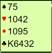Ved det andre bordet valgte vest å doble opplysende i stedet for å melde inn 1 spar. Greit nok, kanskje, og mest et stilspørsmål. Problemet med opplysende dobling er at du ikke har fått vist femkorts major med det samme, og selv om vest i dette meldingsforløpet så at det var glimrende rutertilpasning måtte han nesten annonsere sparfargen som sin andre melding. Da endte de i 4 spar.