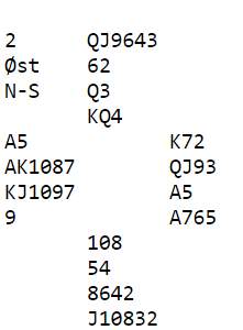 Det stinket trumfutspill da øst hadde vist begge major og nord straffedoblet, men syd var unnskyldt - han hadde ikke trumf.