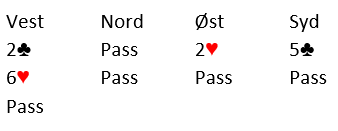 Det handlet mest om hvor høyt syd skulle sperre etter innledningen 2 kløver (vest) - 2 ruter. Ved noen bord gikk det slik: