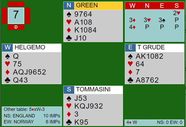 Over Grude sin 3 spar meldte Helgemo 4 ruter. Grude ga opp og passet.