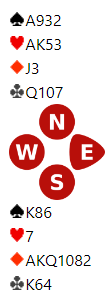 Vest hadde åpnet med 1 hjerter, og det nord nå vet er at vest antagelig har en bra åpning med noe ekstra. Vest skal til slutt spille 4 hjerter.