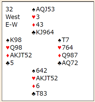 Slik det satt kunne Ø/V enkelt bete 4 hjerter. Med -100 til Nordisk Kombination ved det bordet, og -140 ved det bordet Bakke-Grude satt ble det 5 IMP ut, og dermed var de akkurat forbigått med 1 IMP etter det aller siste spillet.